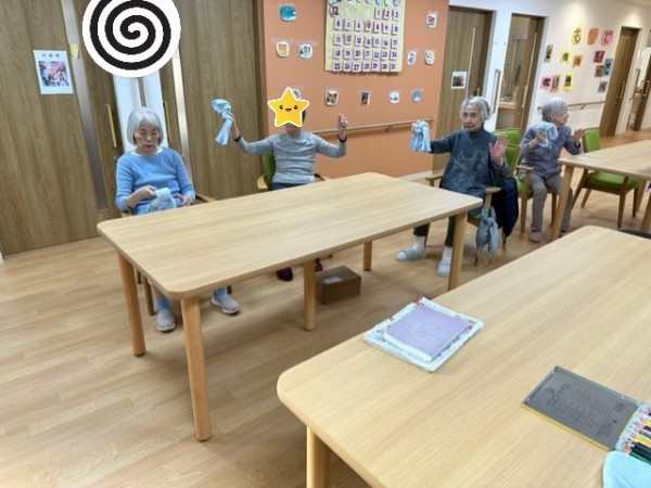 タオルを使用し足の間を通したり、上に投げてキャッチしたり、普段からやらない動きをたくさんしました♪