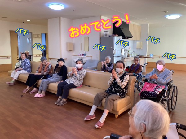 お誕生日を、ご入居者様達も祝ってくれますよ。