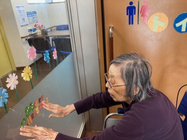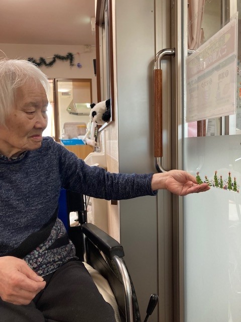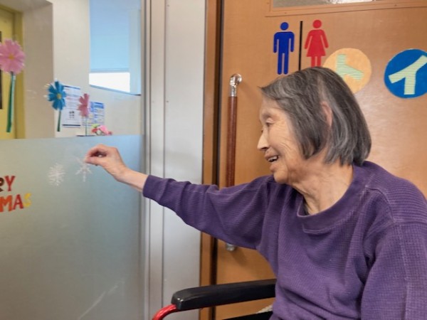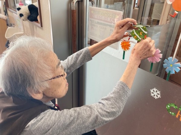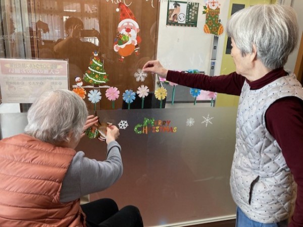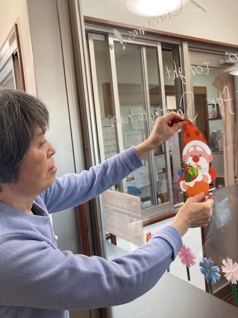 ガラス扉に皆さんで飾り付けを行いました。