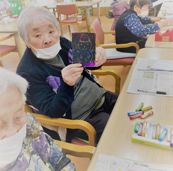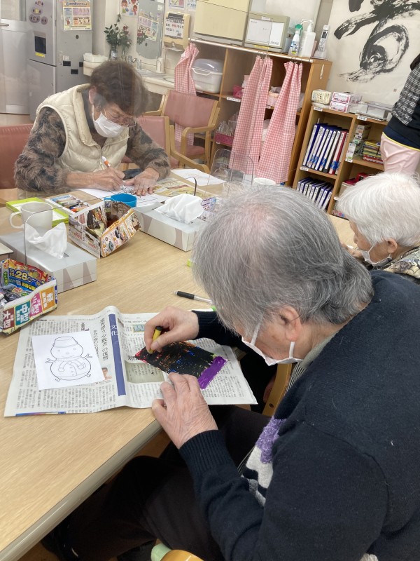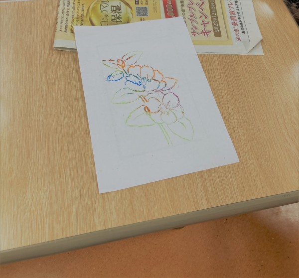 ハガキ裏にクレヨンを塗って、そこから黒で全部染めて最後にボールペンでなぞれば完成です!!