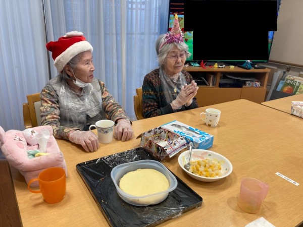 皆様で、クリスマスの雰囲気を楽しみながら、ケーキ美味しく召し上がりました。