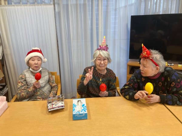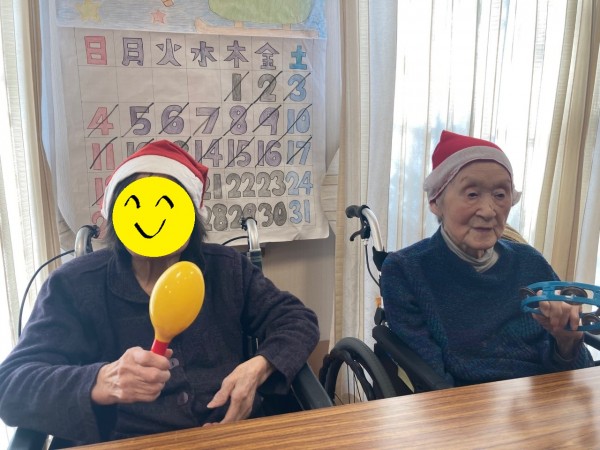 おなじみの、昭和の歌謡曲、童謡を、タンバリン、マラカスを持ちリズムに合わせながら