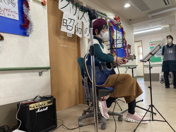 なんと!職員の中にギターを演奏できる職員がおり、生演奏を披露していただくこととなりましたヾ(≧▽≦*)o