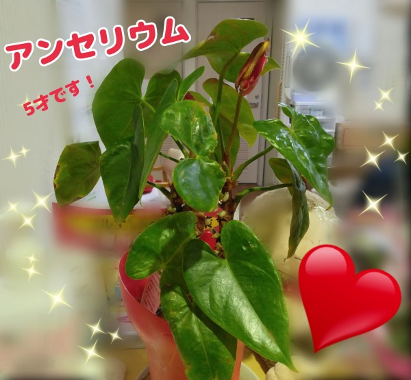 ケアステーションのカウンターに、目新しいアンセリウムの鉢植えが置いてありました。