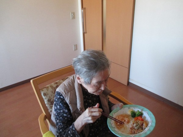 本日は、クリスマスメニューということもあり、普段食事摂取量の少ないご利用者様も、美味しい!と言いながら、召し上がっておりました(^^♪。