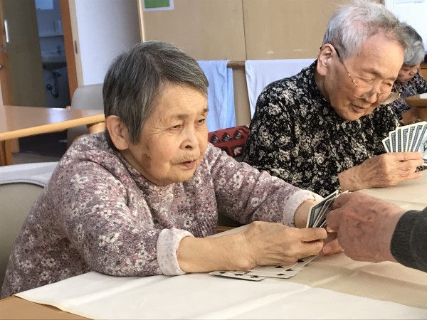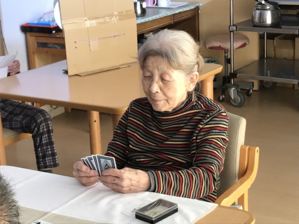 ご利用者様が集まってカードゲームに興じていました。