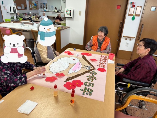 ◉楽しそうに談笑されながら『兎の絵馬』の壁画の総仕上げをされる女子の方々☆