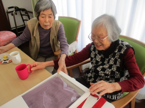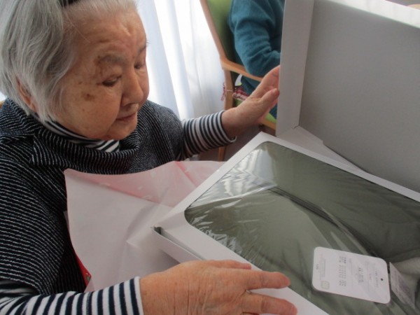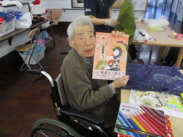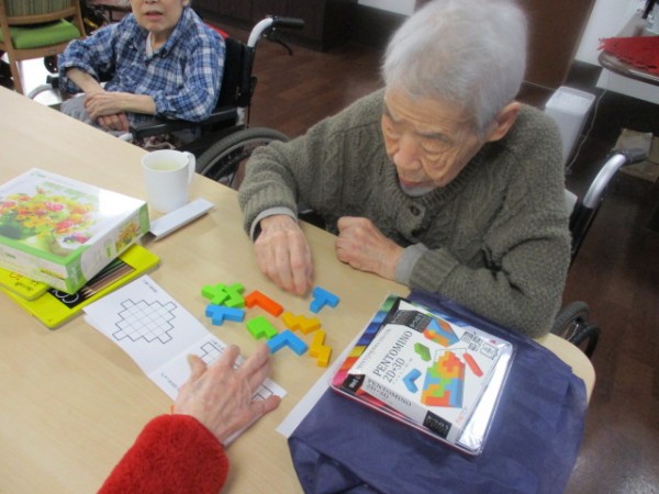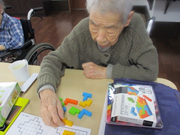 F様は息子さんからのプレゼントの脳トレにさっそく取り組みお向いの席の方々と一生懸命頑張ってましたよ\(^o^)/