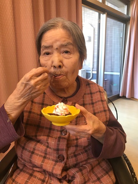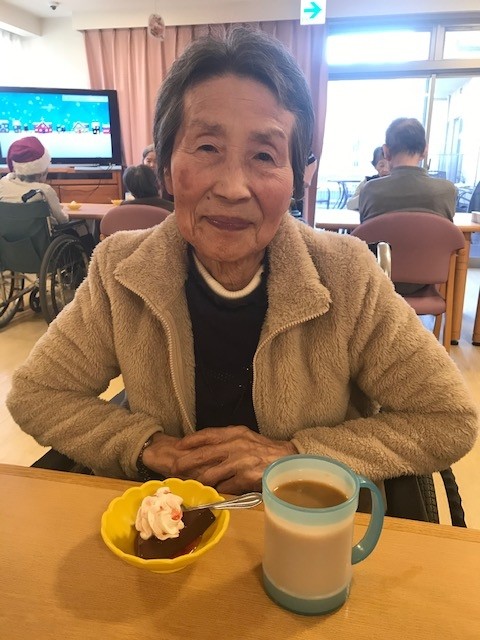 ご入居者の皆様はおいしいデザートを召し上がりながら、サンタのコスチュームやトナカイのカチューシャを身に着けたスタッフをご覧になり、とても素敵な笑顔を見せて下さいましたー!!