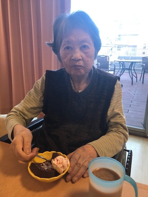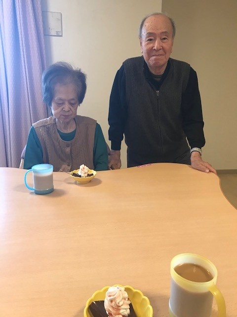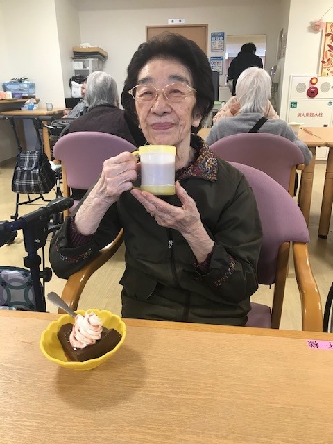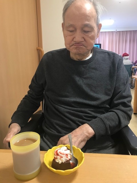 12月24日(土)アミカの郷川口では、ご入居者の皆様にお飲み物&チョコババロアを召し上がっていただき、ささやかなクリスマスカフェを開かせて頂きました。
