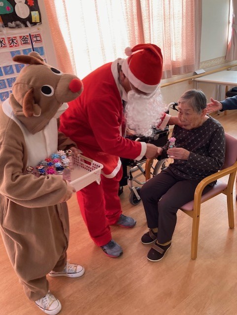 アフリカからやってきたサンタさんよりプレゼント贈呈(。・∀・)ノ゙ 皆さん、プレゼントを受け取りニッコリヾ(≧▽≦*)o 手作りの置物??? サンタさんがこの日のために作ってきたようです\( ̄︶ ̄*\))
