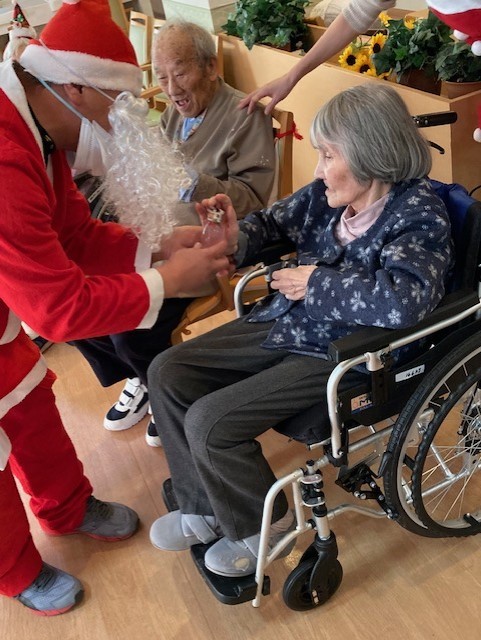 サンタさんが1人ずつプレゼントを贈呈(。・∀・)ノ゙