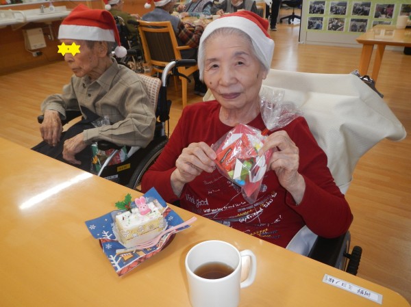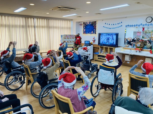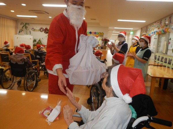 予想外の大きなサンタの登場に、集まっていたご利用者様もビックリ!(ホーム長だと思っていたのでは)