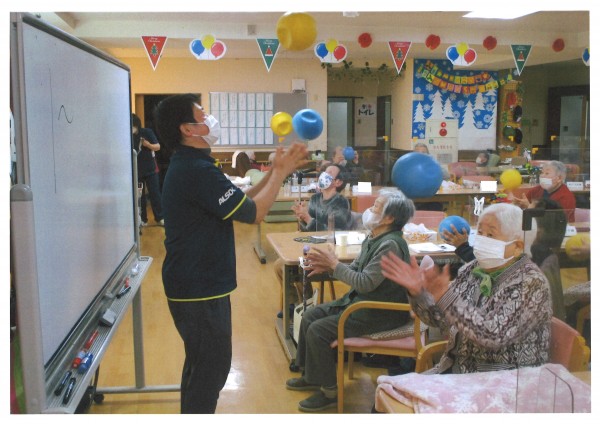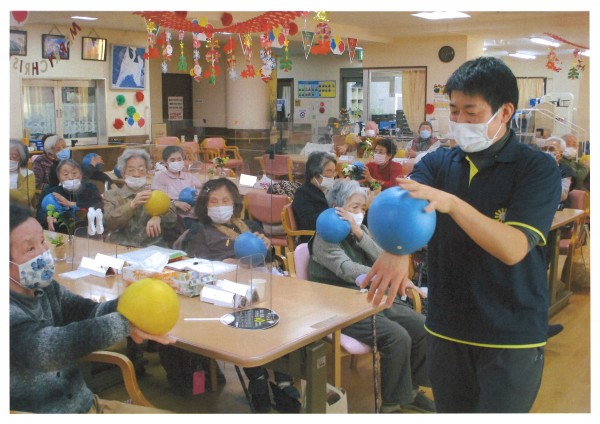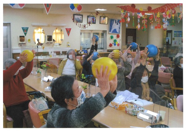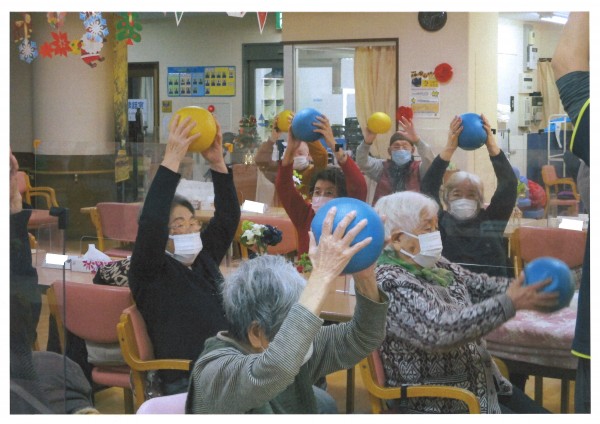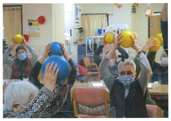本日午後のレクリエーションは【ノーアエクササイズ】声を出して数を数えながら手足を動かすことで、脳の血流が良くなるというエクササイズです。指運動やボールトレーニング等も取り入れながら楽しく脳と体を鍛えます。運動というとちょっと億劫になる方もいると思いますが楽しい40分のエクササイズで、もう終わりなの?というぐらいあっという間に時間が過ぎてしまいます。寒い冬、体も心も脳みそもホットになってみませんか?ご利用お待ちしています♪