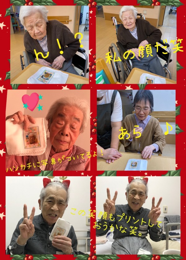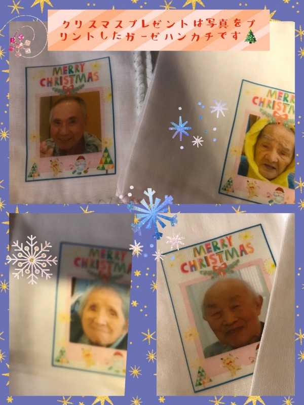 今回のクリスマスプレゼントは(*'ω'*)・・・皆様のお写真をプリントしたガーゼハンカチです☆