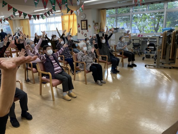 ご利用者様皆さん、クリスマスソングに合わせて、とても楽しそうに体操に取り組んでいました。