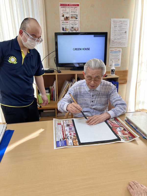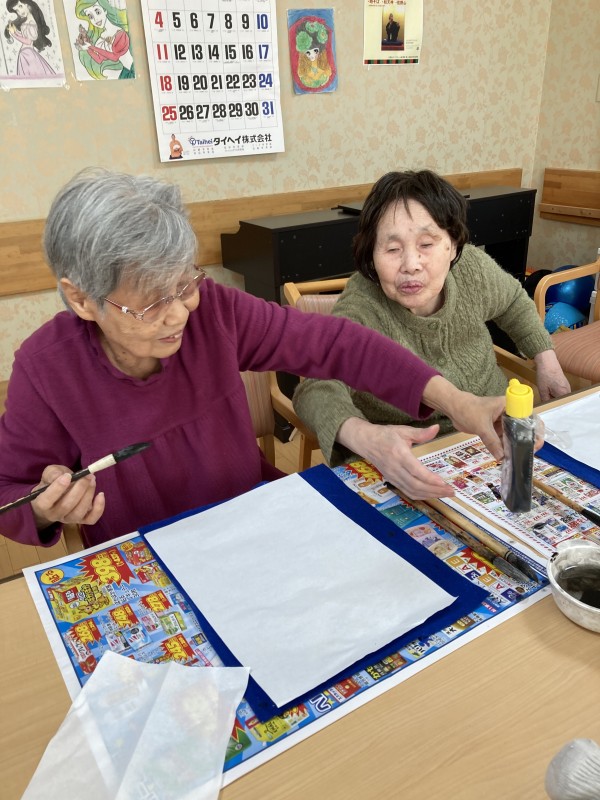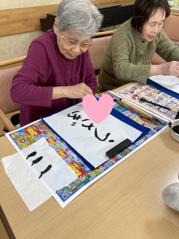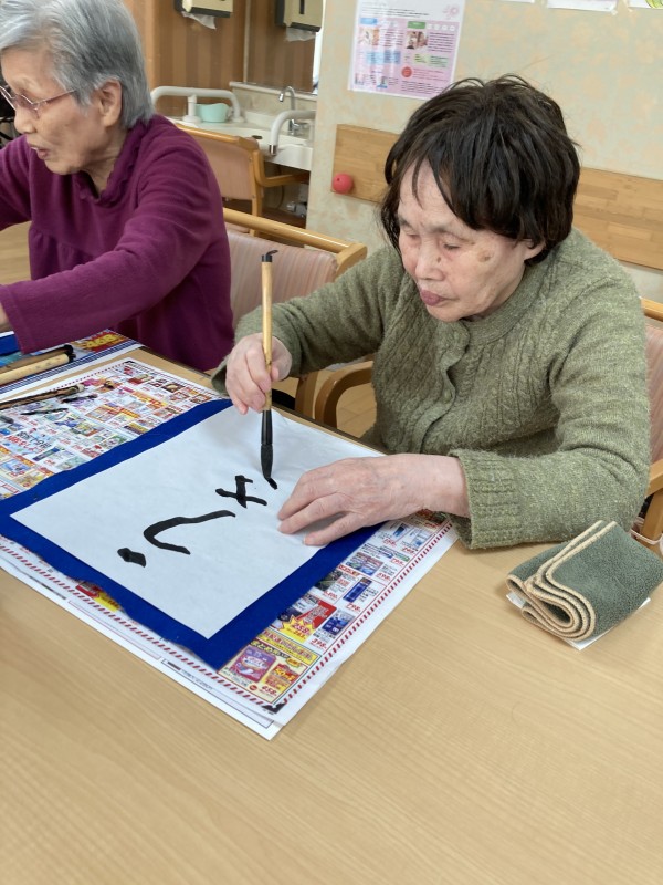 「上手く書けるかな?」「書道なんて久しぶりだから出来ないよ~」と最初は皆さん自信がなさそうでしたが、いざ書き始めると「楽しい~」と皆さん