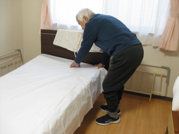 職員と一緒にシーツ交換して下さっています!!