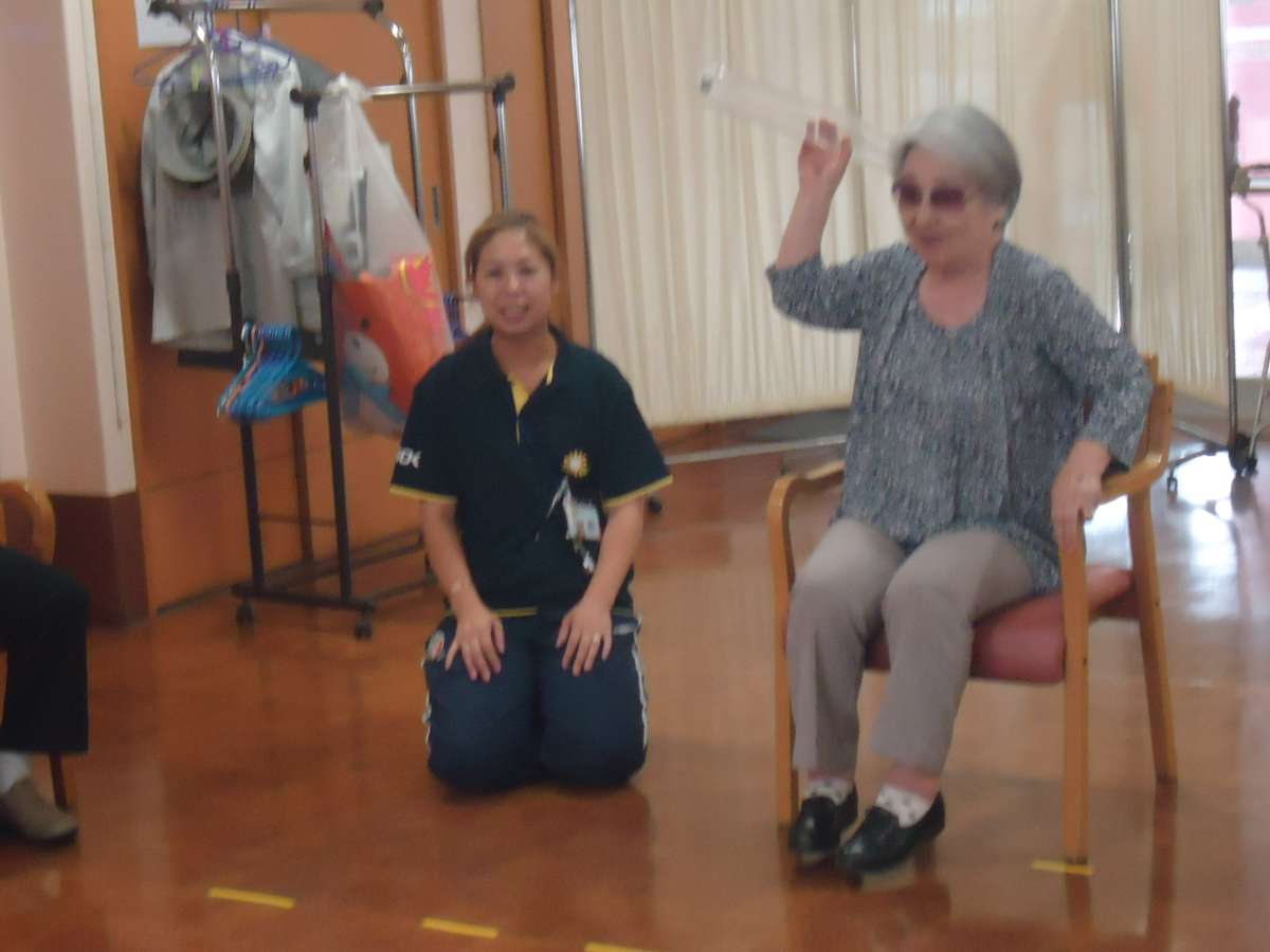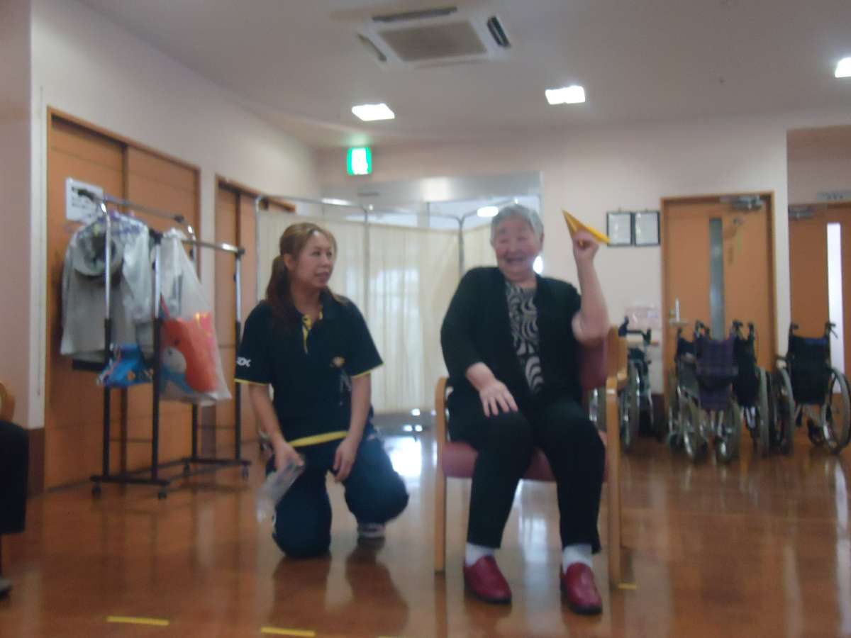 紙飛行機とビニール袋を飛ばすゲームを行いました。