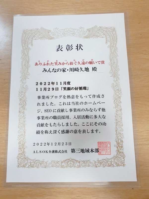 が、ALSOK介護株式会社 第三地域本部(川崎久地が所属している本部)