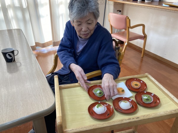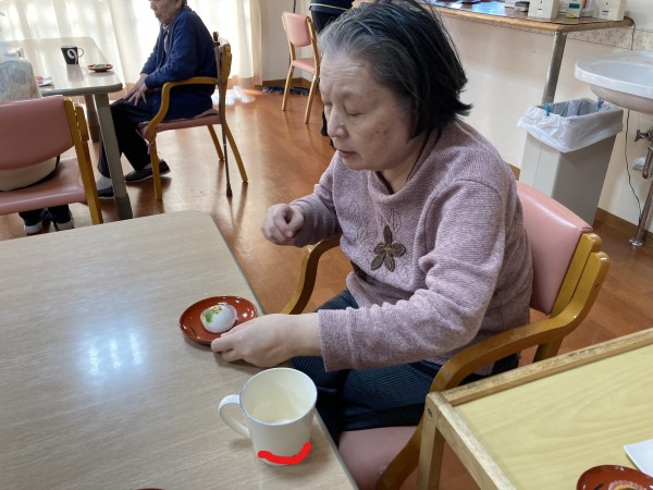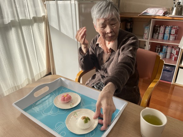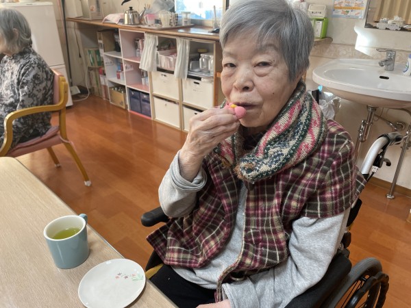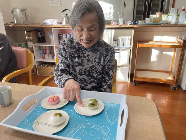 おやつは数種類の和菓子の中から利用者様に選んでもらいました。
