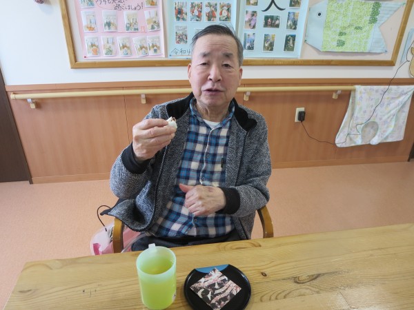 新年のおやつに「十万石饅頭」を召し上がって頂きました。