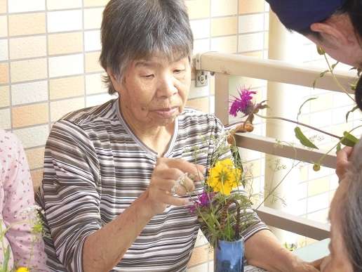 ボランティアの方が来られ、生け花や傾聴をしてくださったり、将棋をしてくださいました。