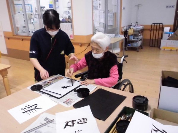 本日は年明け1回目のレクリエーションとして書き初めを行いましたので、