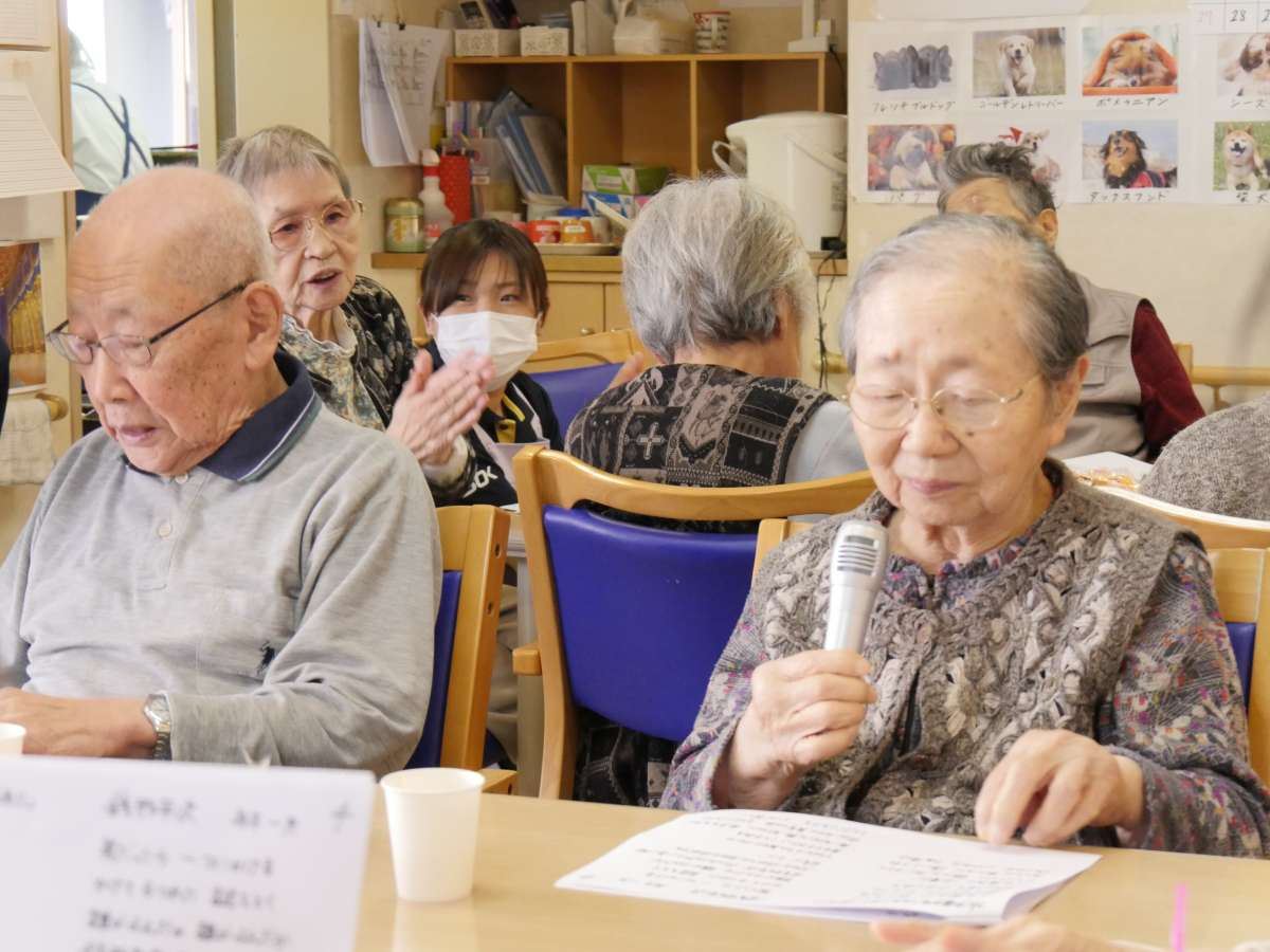 各月ごとに行われるレクリエーション・ノーアエクササイズ・オレンジカフェ(奇数月)では、各階のご利用者方が一緒になって歌ったり会話をとったりして過ごします。