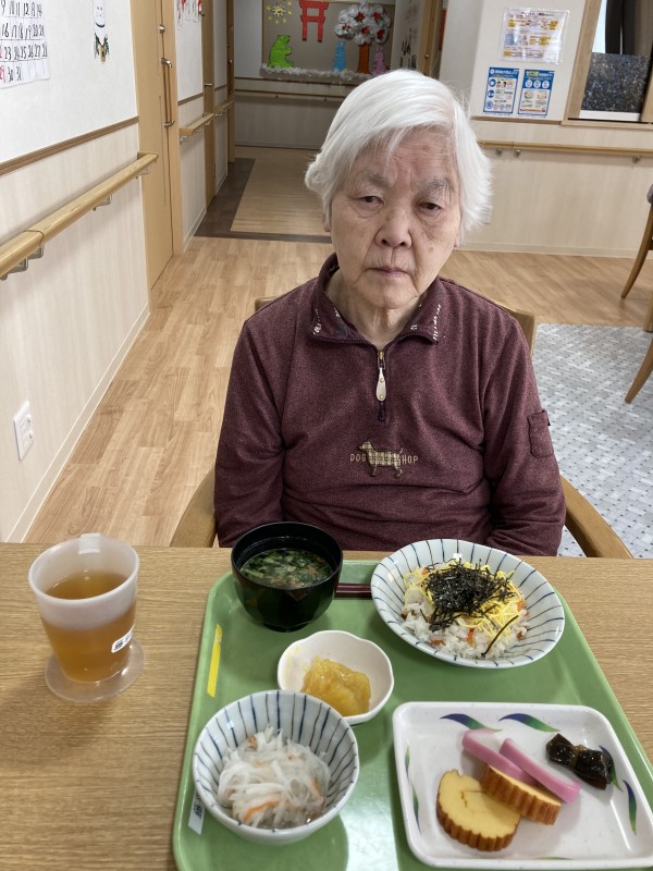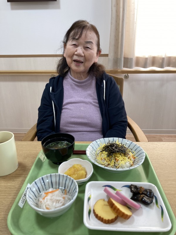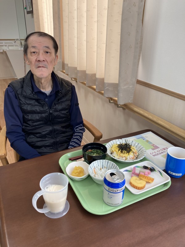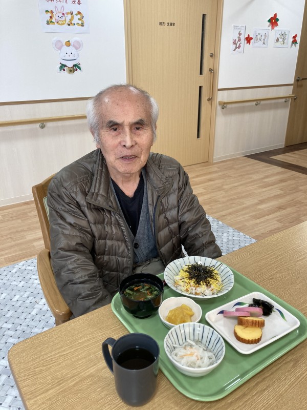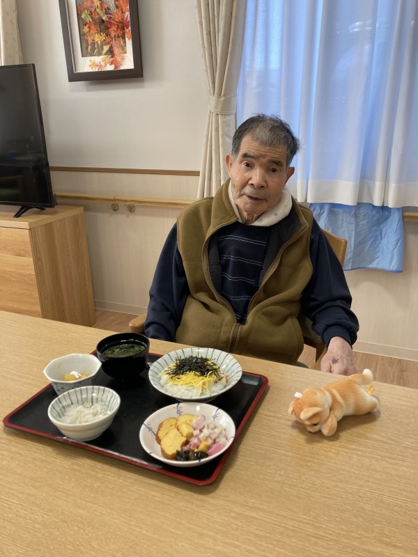昼食はガッツリお正月♪皆さんお正月の食事に「気分が良いね〜♪」とニコニコです。今日は元旦⁉️お正月なの⁉️ 1年は早いね〜と楽しい会話で食事が進みますね❤️