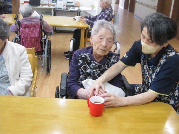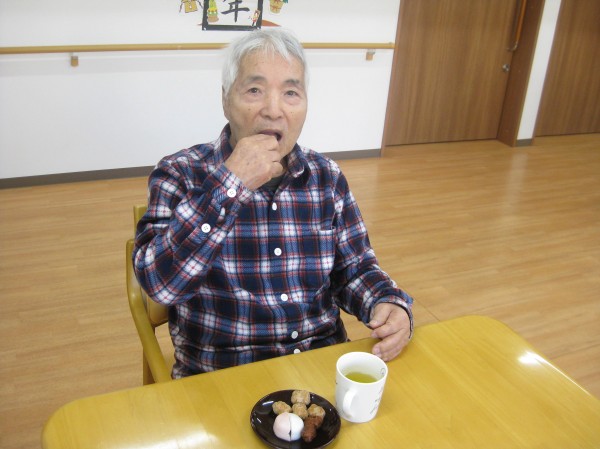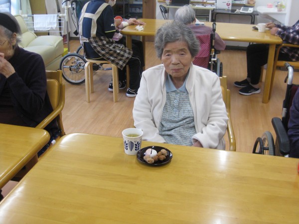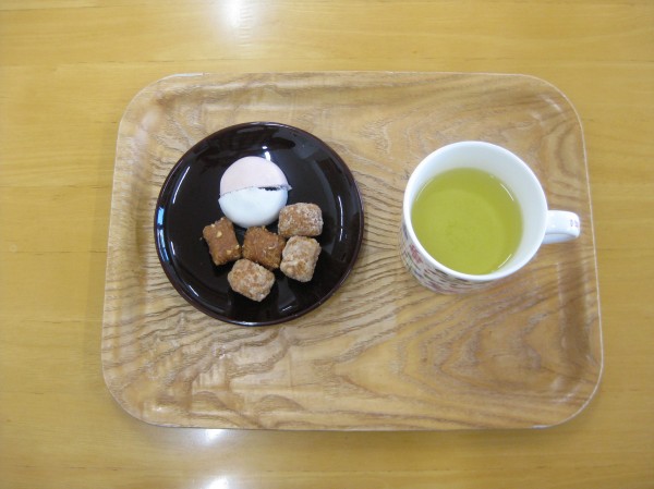 おやつに紅白饅頭とかりんとうのセットを召し上がられました!(^^)!