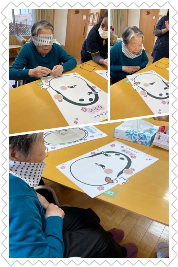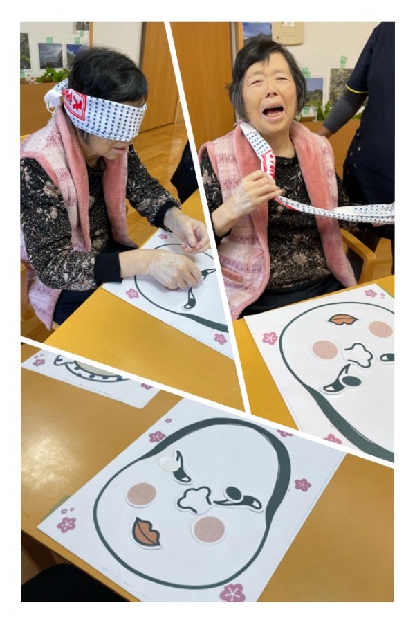 お正月初笑い!【福笑い】をしました。