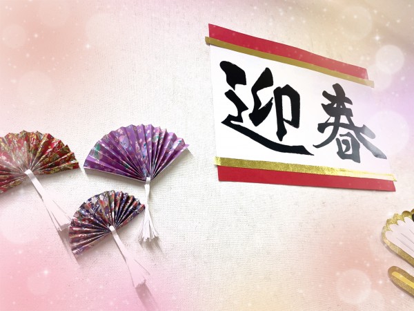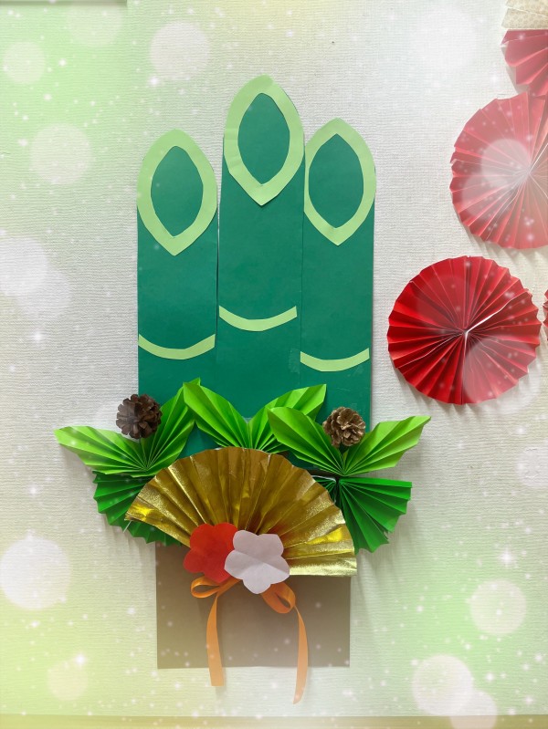紅白のペーパーファンに門松がなんともお正月らしい!
