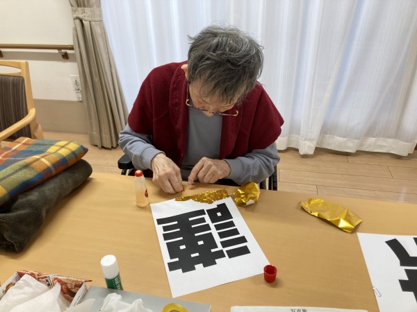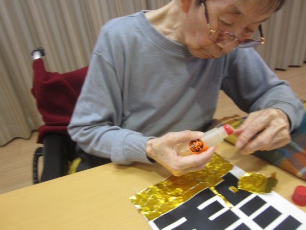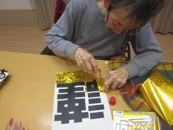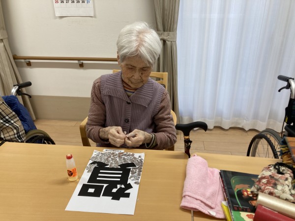 ★☆お正月の貼り絵を皆様で作成レクリエーション2023年(^^♬