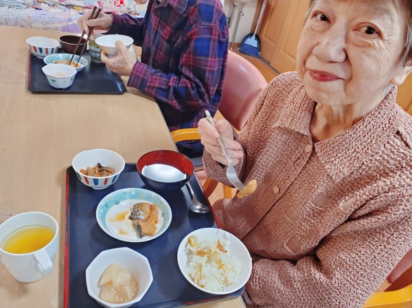 ○○ケアスタッフがお芋を持ってきてくださり、皆様の食事に一工夫してくださいました。