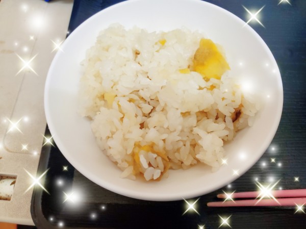 今日の昼食、なんとお芋ご飯がでました。(*^▽^*)