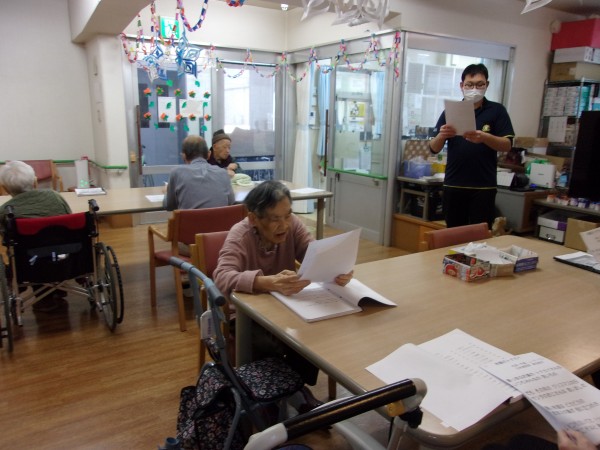 皆さんで「ジングルベル、赤鼻のトナカイ、あわてんぼうのサンタクロース」等を合唱したり、