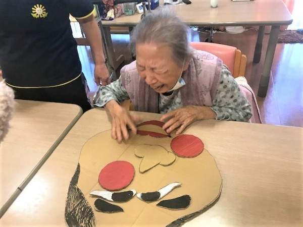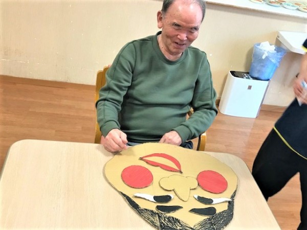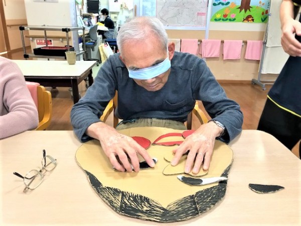 段ボールで作った『福笑い』ですが、皆様楽しんでいただけました。