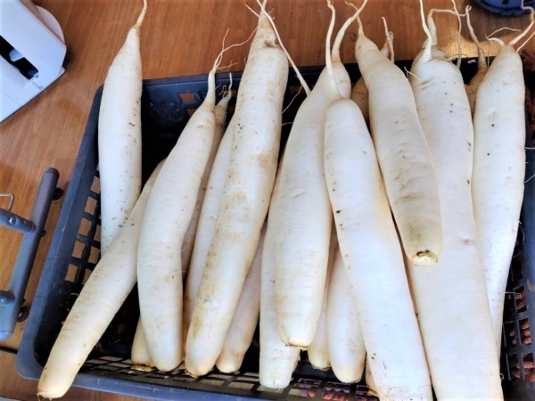 三保2農園ですくすく成長した大根を収穫しました。