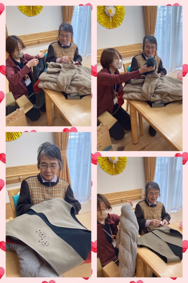 ご家族様より冬物の衣料が届きました(*'ω'*)これも暖かそうねっと嬉しそうにお話されました(^^♪
