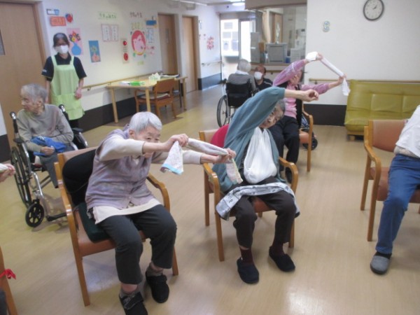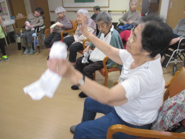 いつものとおりタオルを使って運動し、