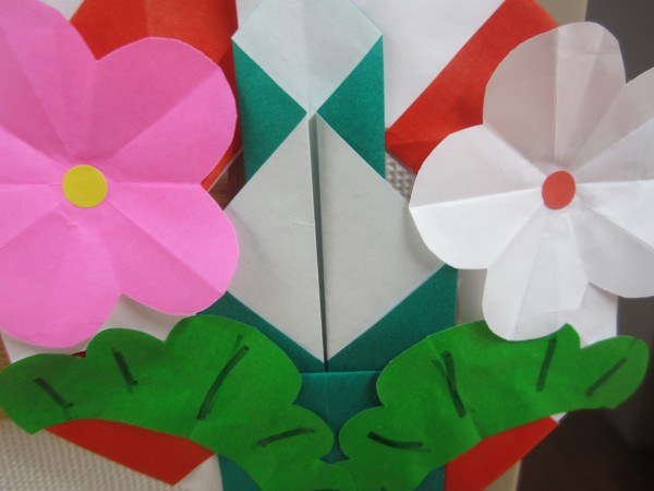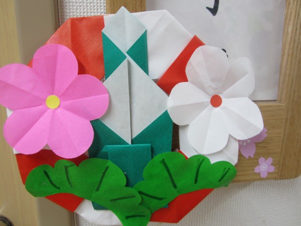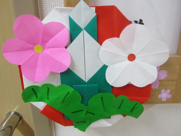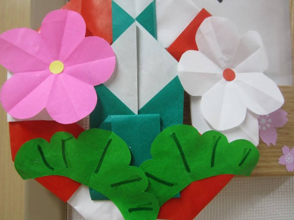 さまざまな色の折り紙で正月飾りの門松を作成しました\(^o^)