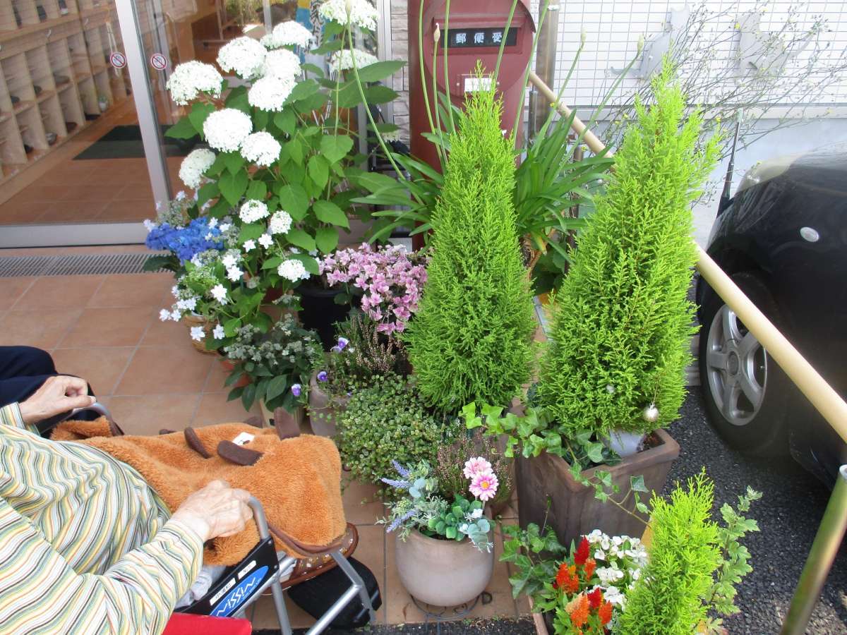 今回は、元気に咲いている玄関前のお花たちをご紹介です。