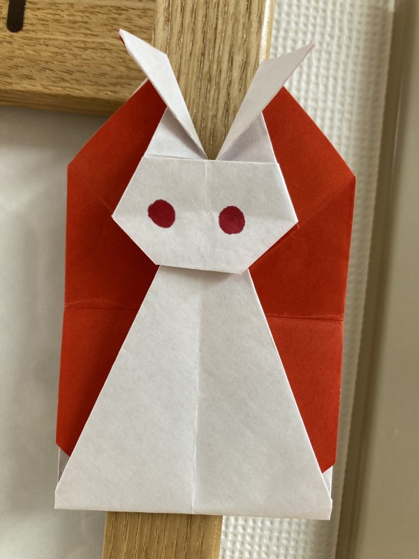 さまざまな色の折り紙で兎年の兎ウサギを作成しました\(^o^)