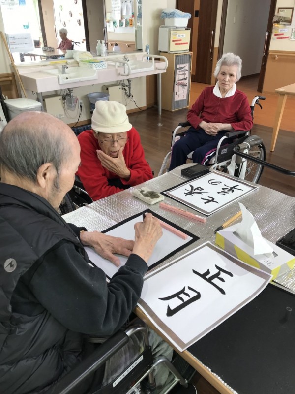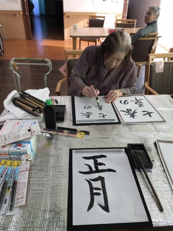 年が明けまして入居者の皆様に書き初めをしていただきました!(^^)!