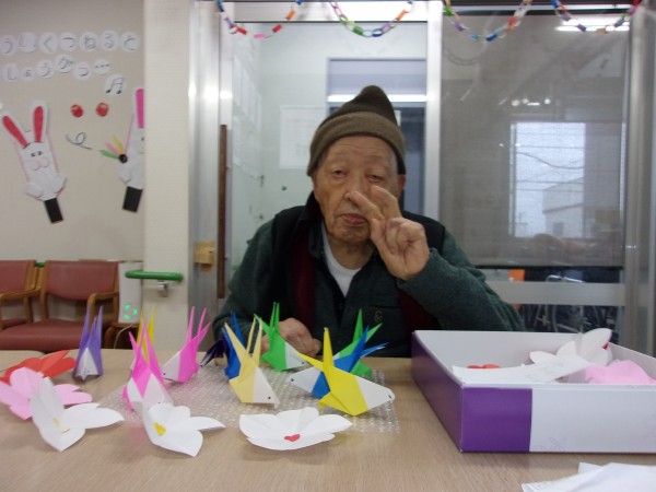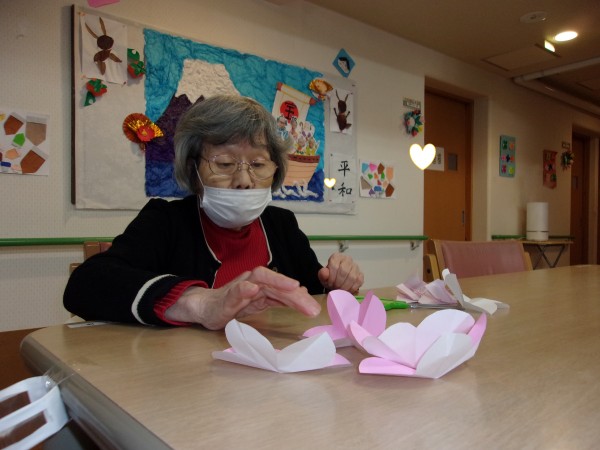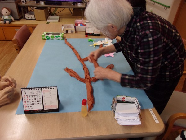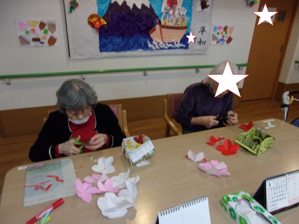 午後のレクリエーションで、梅の花、うぐいすを皆様に作って頂きました(^o^)丿