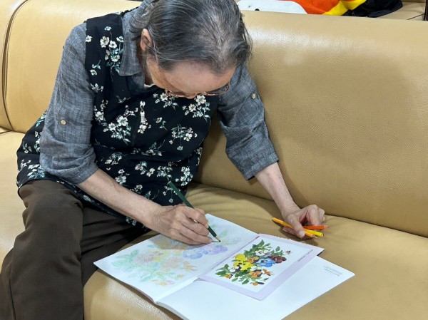 こちらの奥様、最近よくぬり絵をやってらっしゃいます。