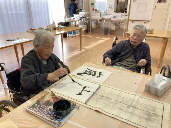★☆新年の書初め習字レクリエーション③階利用者様(^^♬ 『みんなの家・三橋6丁目・介護ブログ』☆★