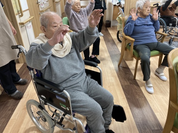さぁ、みなさん!今年初のリモート体操ですね!寒いと身体が縮こまるし、動きも鈍くなりますね。しっかり身体を動かすと〜ポカポカしてきます!硬い表情も〜イキイキしてきましたね❣️今年もたくさん運動して元気いっぱいの一年にしましょう^o^❣️