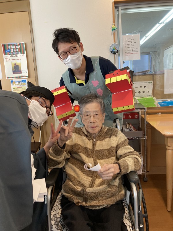 新年会ではご利用者様に新年のご挨拶とおみくじ、今年のご健康とご多幸を職員がご祈願させて頂きました。